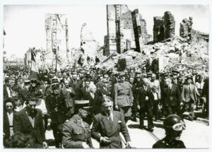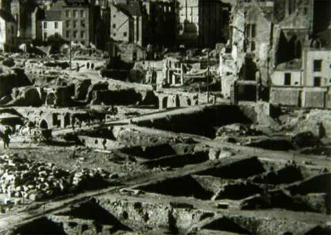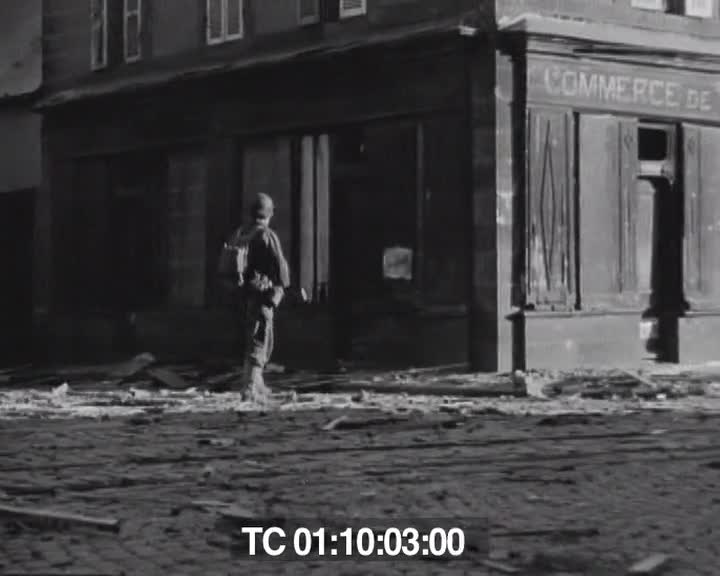 Des soldats américains traversent les rues en ruines. Ils écoutent un disque dans la rue et dansent. Des prisonniers allemands vident leurs poches. Des soldats américains étudient une carte. Un tank dans la rue. Des soldats américains marchent sur le portrait d’Hitler, traversent des ruines, tirent à la mitrailleuse, parlent avec un walkie-talkie. Un tank tire dans la rue.