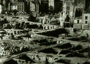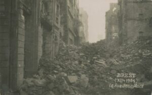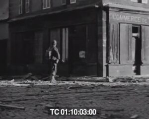 Le 2 août 1944, libération de Landéan à côté de Fougères, 4 août 1944 libération de Rennes, vues de Saint-Malo détruit, vue de la gare de Rennes, quartier Saint-Hélier (?), Rennes détruite après les bombardements, De Gaulle à Rennes (le 20 août 1944).