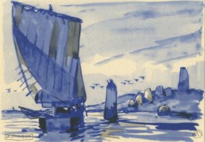 Voilier sloop caseyeur de 5.80 m gréé d’une voilure aurique. Coque en chêne (membrures, bordées) : varangues, allonges et jambettes